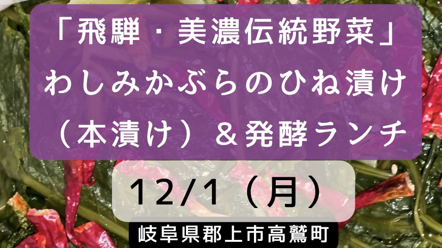 12/1 飛騨・美濃伝統野菜わしみかぶらのひね漬け(本漬け)&発酵ランチ(ワシミカブラのひね漬けのお土産付き)